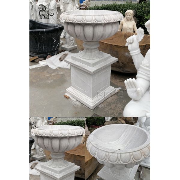 Large Marble Flowerpots Garden Decorative Hunan White Natural Stone Hand Carved Images |